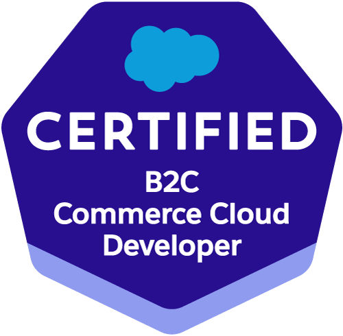 The Salesforce B2C Commerce Cloud Developer credential is designed for individuals who have experience as developers for Salesforce B2C Commerce Digital. The Salesforce Certified B2C Commerce Cloud Developer exam is designed for ecommerce developers who have a minimum of 1 year of developer experience, plus 3-6 months of experience in a B2C Commerce Cloud Developer role.